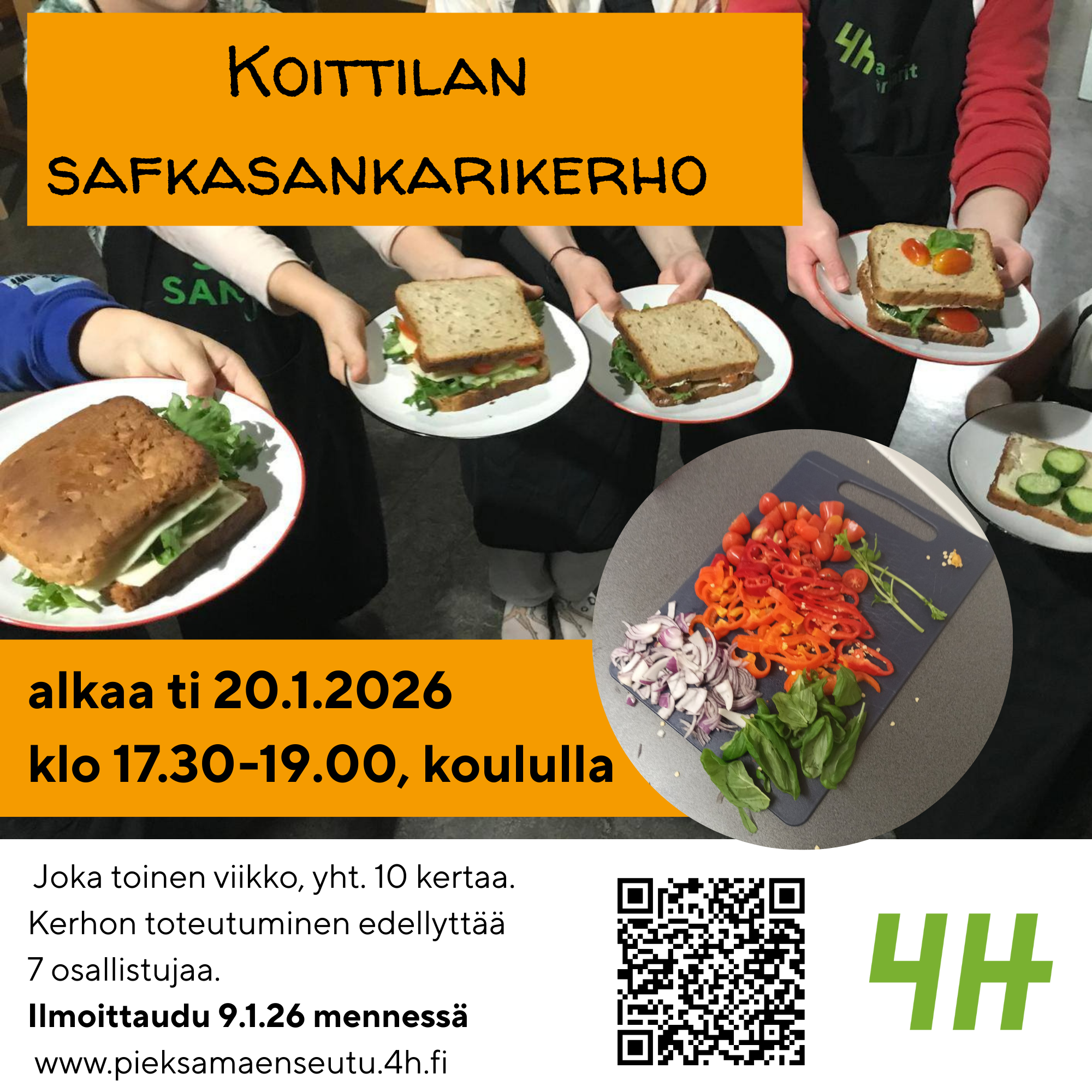 Kirkonkylän kokkikerho alkaa to 22.1.26 klo 17.00- 18.30 Kansiskeskus, kotitalousluokka