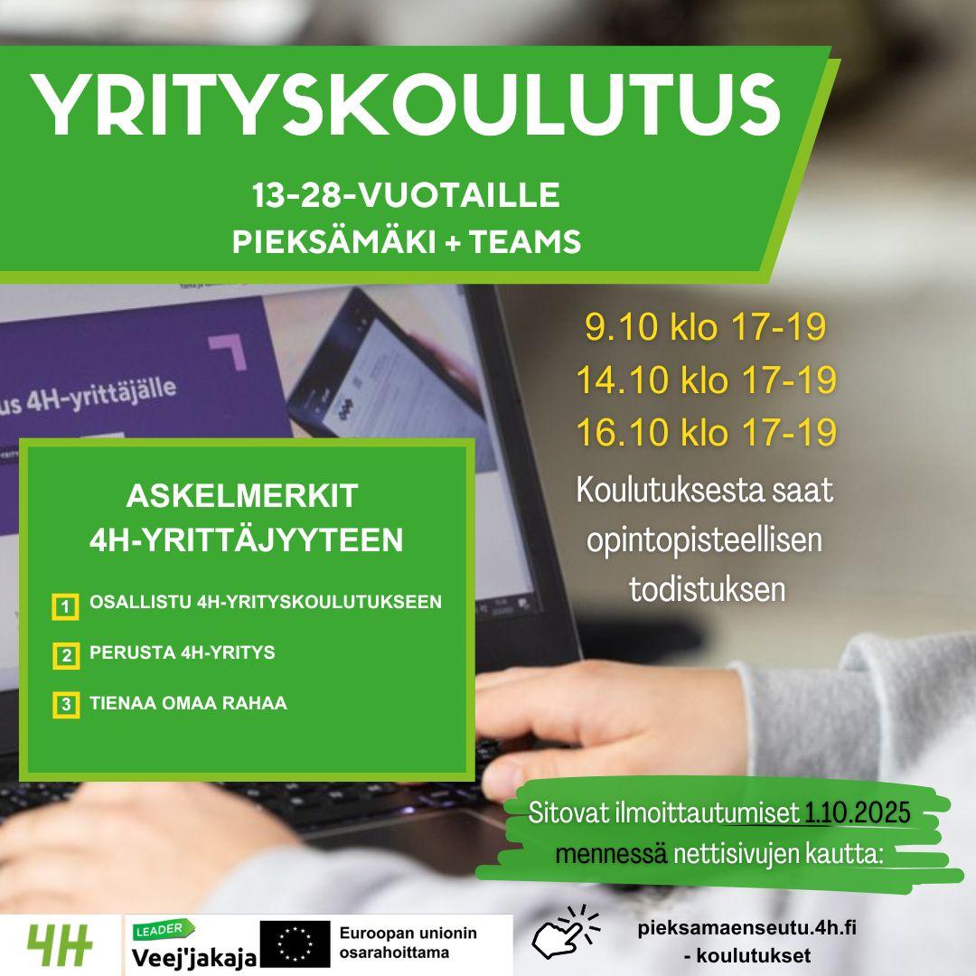 4H-yrityskoulutus kolmen illan kokonaisuutena Pieksämäellä - osallistua voi myös Teamsin välityksellä!