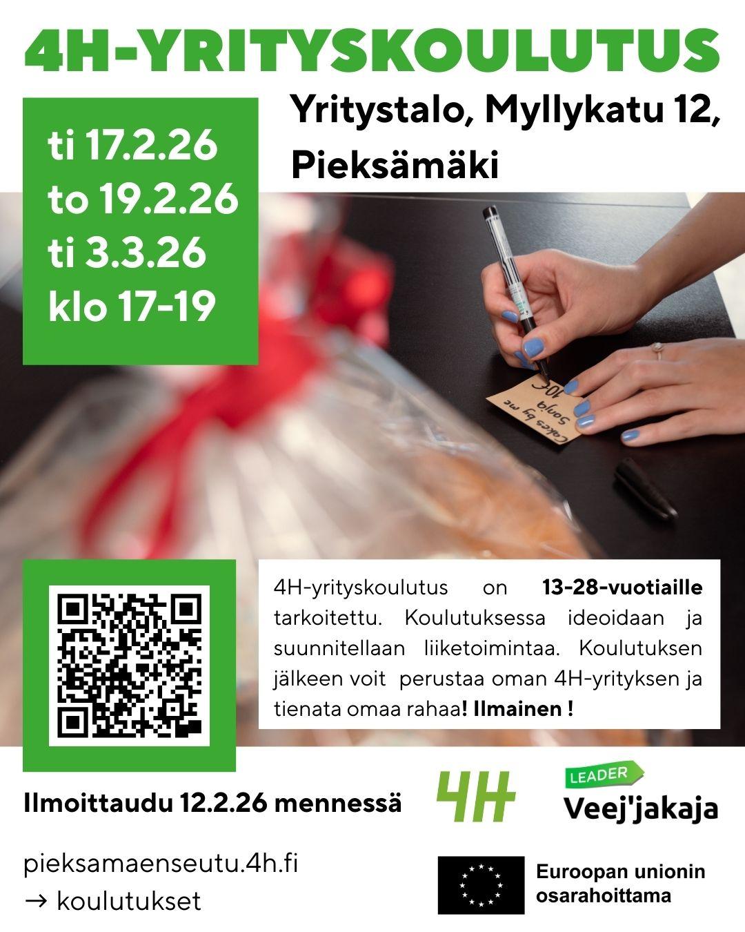 4H-yhdistys järjestää valtakunnallisia yrityskoulutuksia etänä kolmen illan kokonaisuutena, lukukauden jokaisena kuukautena. Lisäämme vuoden 2026 tulevat toteutukset mahdollisimman pian!