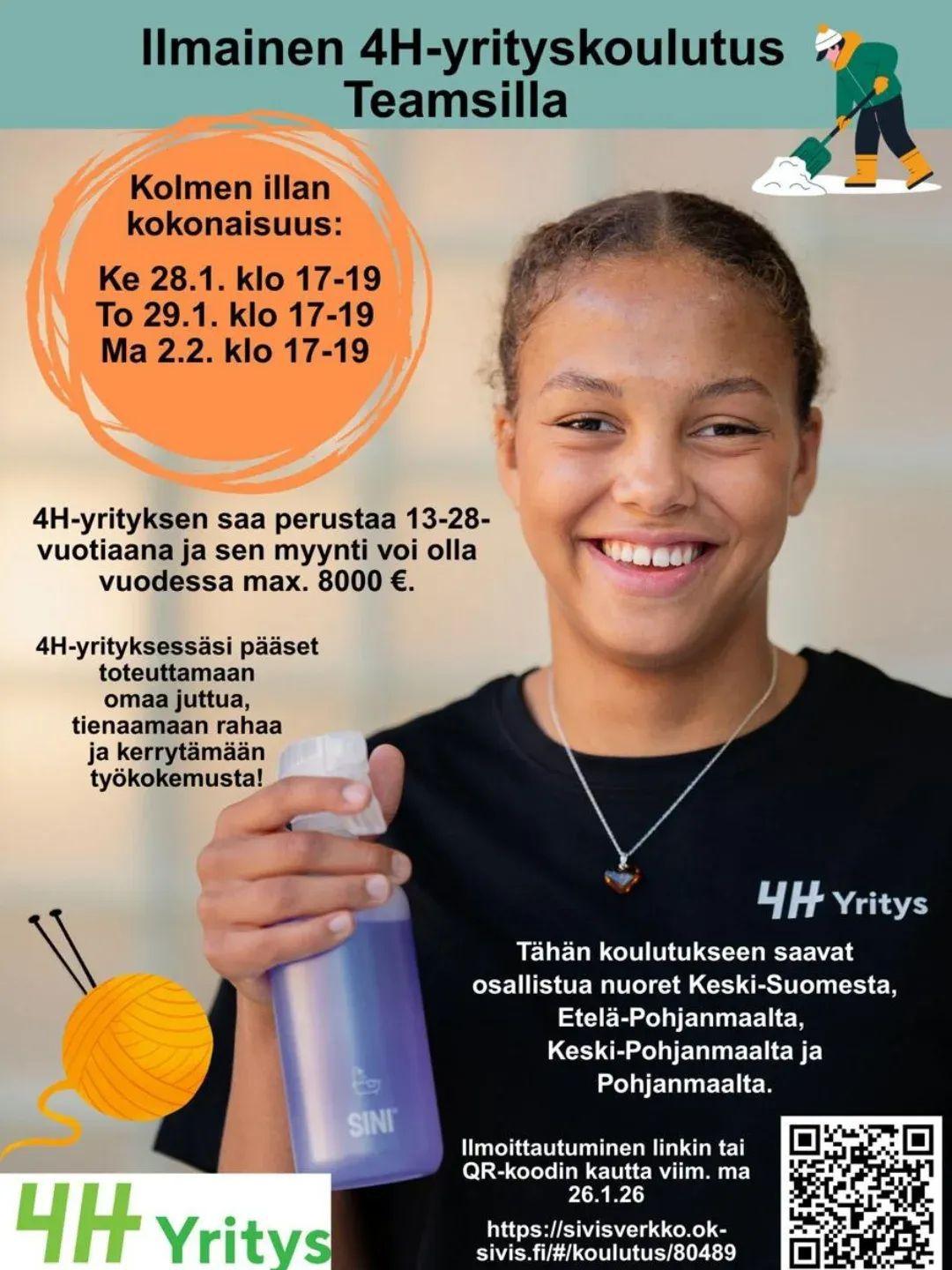 4H-yhdistys järjestää valtakunnallisia yrityskoulutuksia etänä kolmen illan kokonaisuutena, lukukauden jokaisena kuukautena. Lisäämme vuoden 2026 tulevat toteutukset mahdollisimman pian!
